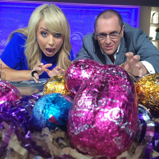 Larry Emdur: “Breakfast is served !!!! Wooohooo gotta love Easter Saturday catering on Weekend @sunriseon7 Get your hands off my eggs Monique x”