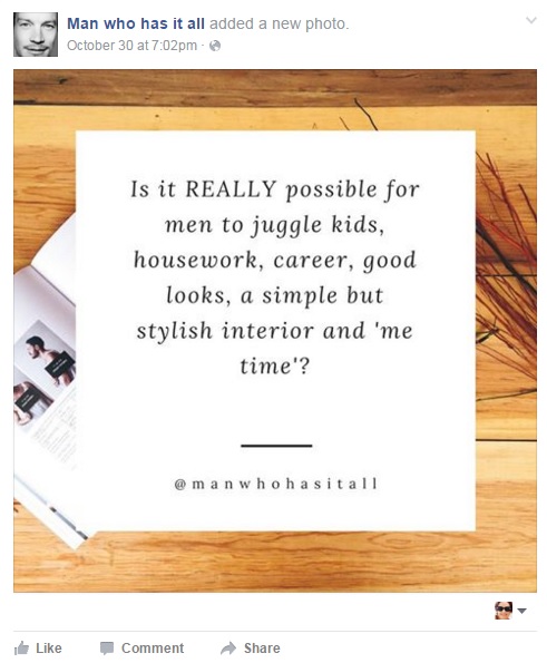 So it was a breath of fresh air to discover a Facebook page called “Man who has it all.”