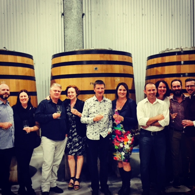 The evening kicked off with Salamander Bay oysters in pools of semillon and salted cod balls in the tasting room, then a tour of the cellar.