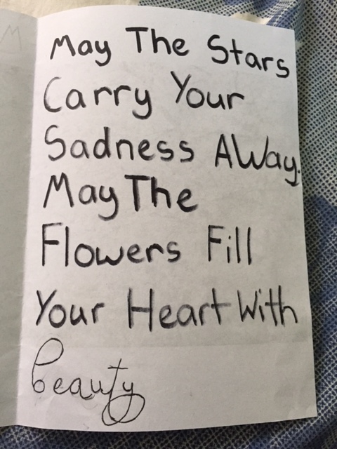 In the days before, the youngest prepared a card for her teacher to hand her at the service. Talk about a tear jerker.