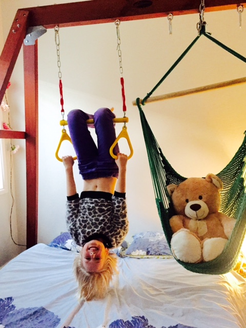 The youngest has charged me with pulling down the play equipment in her bedroom while she’s gone. I suspect she thinks it’s a bit childish to have a trapeze above your bed when you’re in high school.