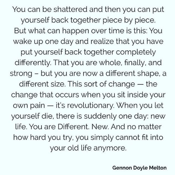 It’s true. Finding the strength to put yourself back together differently and embracing the new is the key to a happier you. Not dwelling on the crappy hand you’ve been dealt by the ex-husband you’re probably better off without.