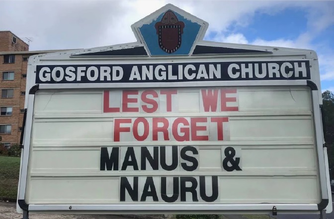 One of their excuses for terrorising and traumatising his congregation was a message he put on a signboard outside the church on Anzac Day.