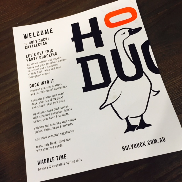 She immediately emailed one and asked if I could make it. I couldn’t because I was going to a media dinner at the newly opened Holy Duck restaurant in Castlecrag.