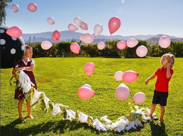“SURPRISE … ” Simpson, 38, captioned the first image of her kids about to pop two large polka-dot balloons to find out if they were having a brother or a sister.