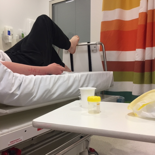 It’s at such moments I look around frantically for a more adulty person than me to help, because I feel completely out of my depth. The medical staff barely batted an eyelid about a 15-year-old loudly puking and moaning. I figure it’s just a normal Saturday morning for them.