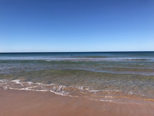 See that tiny little black speck in the water? That’s me! Halfway to New Zealand! DD took the photo from the shore while wearing his new puffer jacket, as there was NO WAY he was going in.