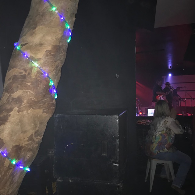 The Cambridge’s live band room was funny little place. I think it used to be a beer garden, because there’s an actual tree sitting to one side, plastered into a hole in the ceiling. The space has been enclosed to become a black dungeon-like room that was quite fun because we scored the most awesome table right next to the stage and the house wine was Audrey Wilkinson. The bartenders admitted they were a little startled by how much Audrey they went through as I think they’re used to a beer and premix crowd.