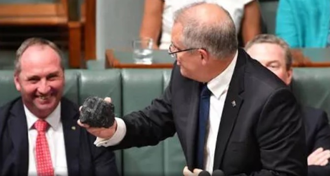 Although that IS a genuine picture of Scott Morrison waving a piece of coal around in parliament in 2017, thinking he was super cool to mock his opponents’ desire to move towards more renewable energy sources.