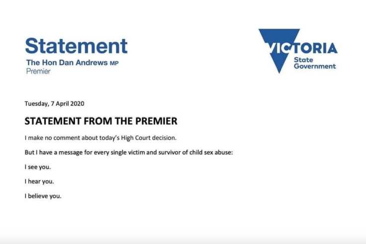 I mean, when was the last time you saw an Australian Premier release a statement like this after a former Cardinal was acquitted?