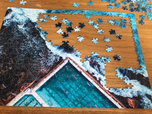 As for the thief part, I stole DD’s new jigsaw puzzle. The youngest was transfixed by a beautiful one he’s currently putting together of an ocean baths, so I figured it might pass the iso time for us this week to get puzzling.