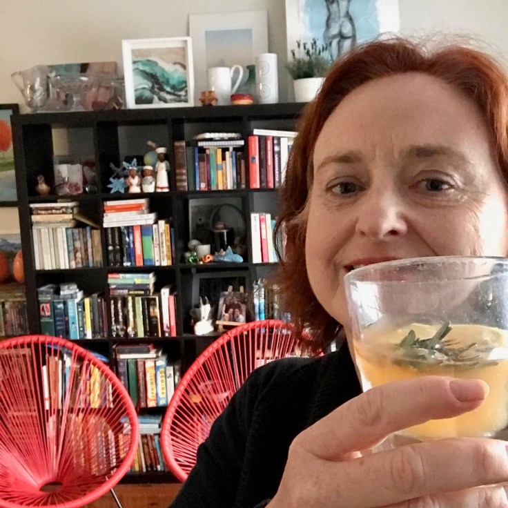 I tried to take a selfie of myself with the highball and I looked like I was 80, deadset, even though I’d carefully applied make-up and spray painted my grey roots. So I’ve hidden the worst of my wrinkles with the glass.
