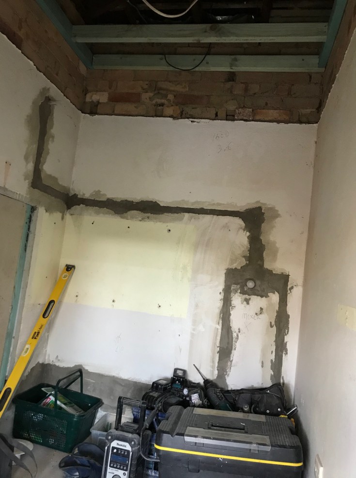 Ooooh, the laundry looks good now they’ve put the higher ceiling in, much less like a torture chamber. I hope it wasn’t a mistake putting a shower in there.