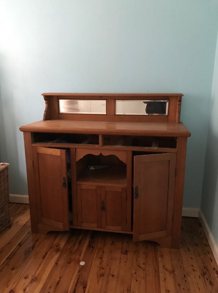 Speaking of nabbing … I got the chippie and the tiler to heft Great Great Aunty Mag’s sideboard out of the living room into the spare room for me yesterday arvo. It weighs an absolute ton. I was sad that it was leaving the living room, but I miscalculated how much wall space would be left after cutting a doorway from the kitchen to the new laundry and there’s no room left for it.