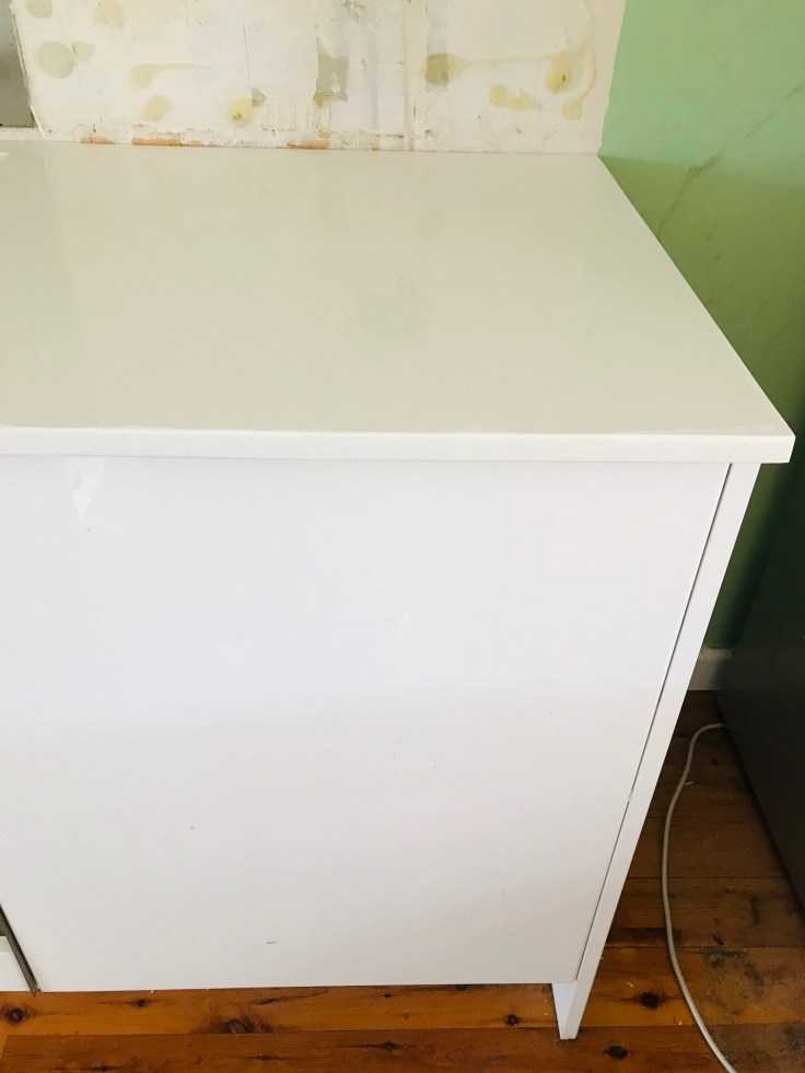 But I didn’t have time to dwell, because it all started happening. The old laminex kitchen benchtops were removed. The new stone ones were installed. They’re not proper white, which is a little disappointing, but in light of the other sucky stuff this week, ah well …