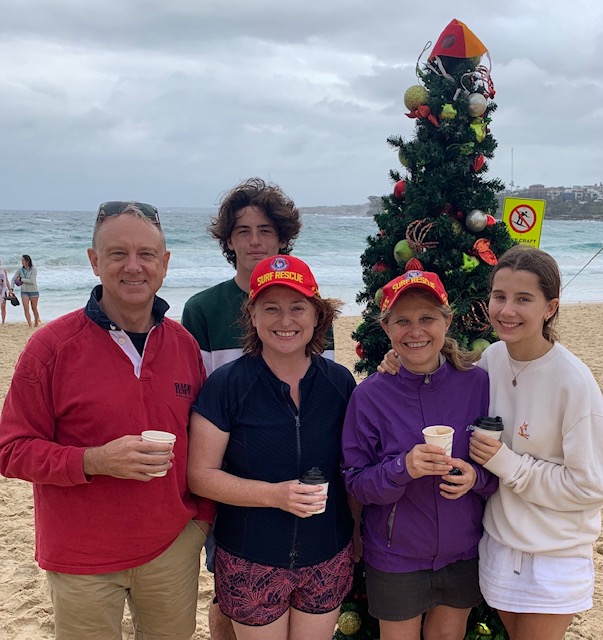 The lifesavers were taking photos of people posing beside a Christmas tree on the beach, so we gathered for a commemorative snap.