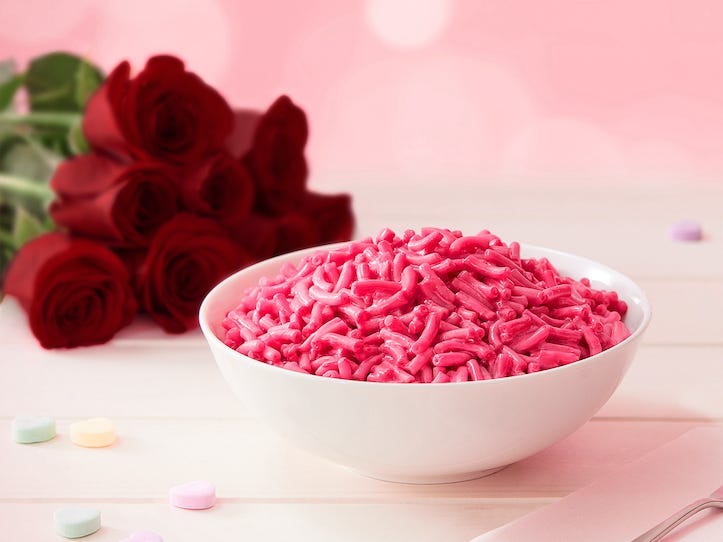 Forget heart-shaped chocolates and bouquets of overpriced roses, celebrate this Valentine’s Day with pink Kraft Mac & Cheese.