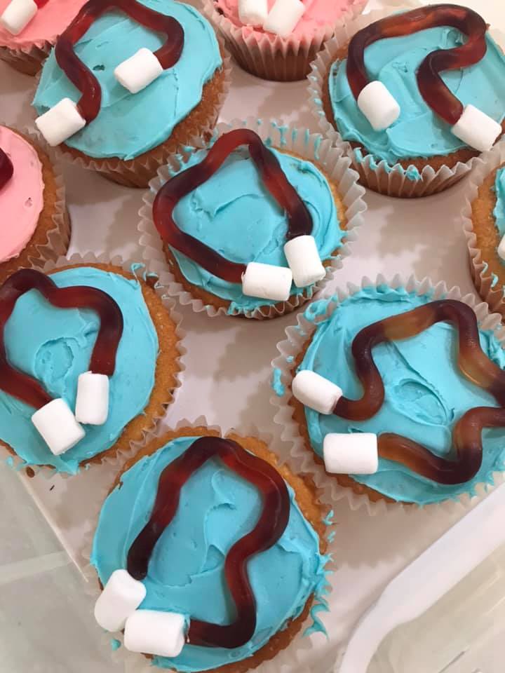 I posted a pic of the cupcakes on Facebook and asked people to guess what the decorations were meant to represent. Answers were split between skipping ropes and stethoscopes. They were a bit of a rush job and, as you might be able to tell from this shot, I wasn’t very neat with the icing. But, hey, 24 cupcakes for fundraising ain’t too bad.