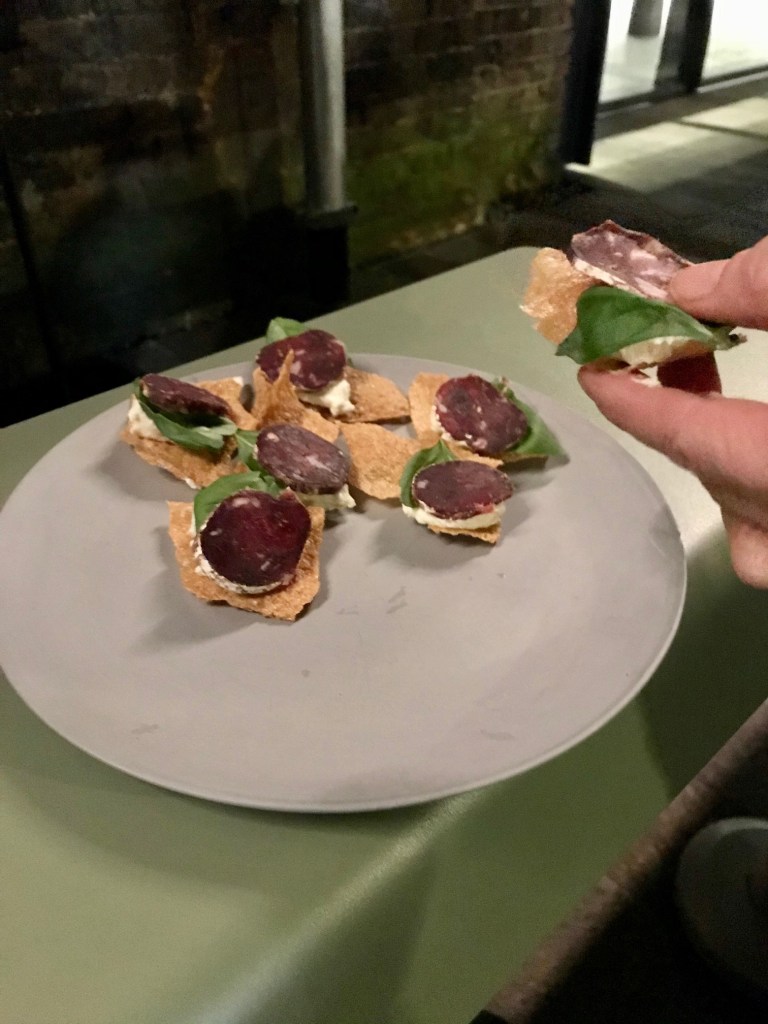 The most delicious snack we sampled was the hand rolls with tuna frame crudo and fermented chilli. So moreish! We also enjoyed rye crackers with whipped buttermilk ricotta & venison Salami, and flatbread with wild deer nduja & cheese.