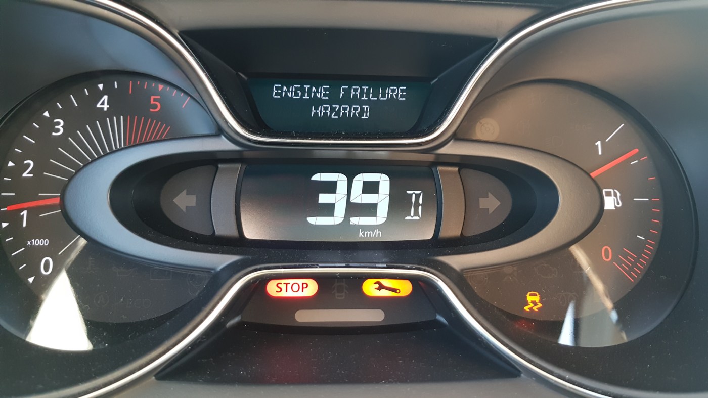 I looked down and the dashboard was flashing “Stop!” and “Engine failure” messages. And I thought “This can’t be happening”.