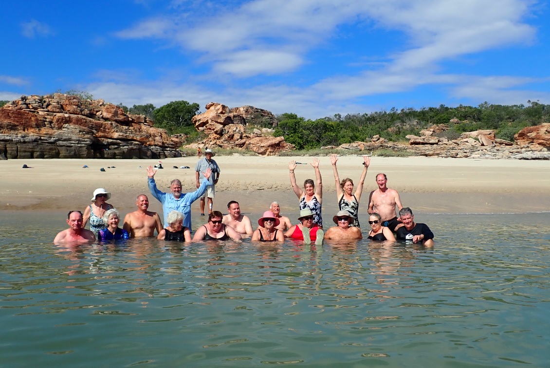 As we walk towards the boab tree, we see large bird prints in the sand and look up to find three elegant brolgas standing metres away from us on the grassy dune. They launch into the air and circle above our heads. The crew tell us it’s the first time they’ve ever seen brolgas in that area.