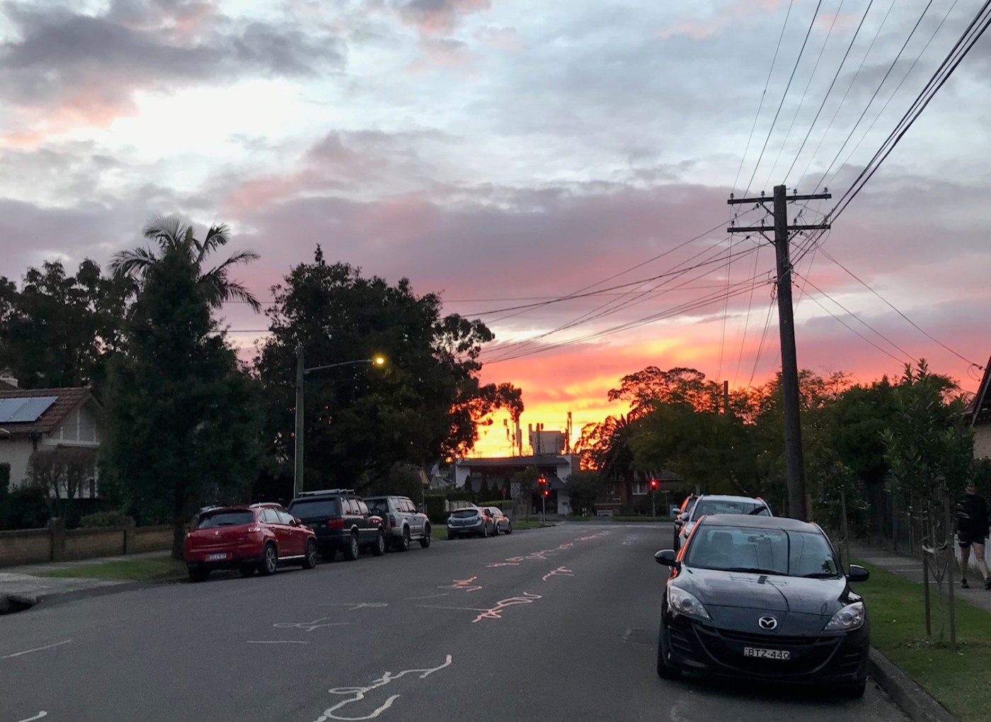 The pic above shows what the horizon looked like when I was walking the dogs in my suburb.