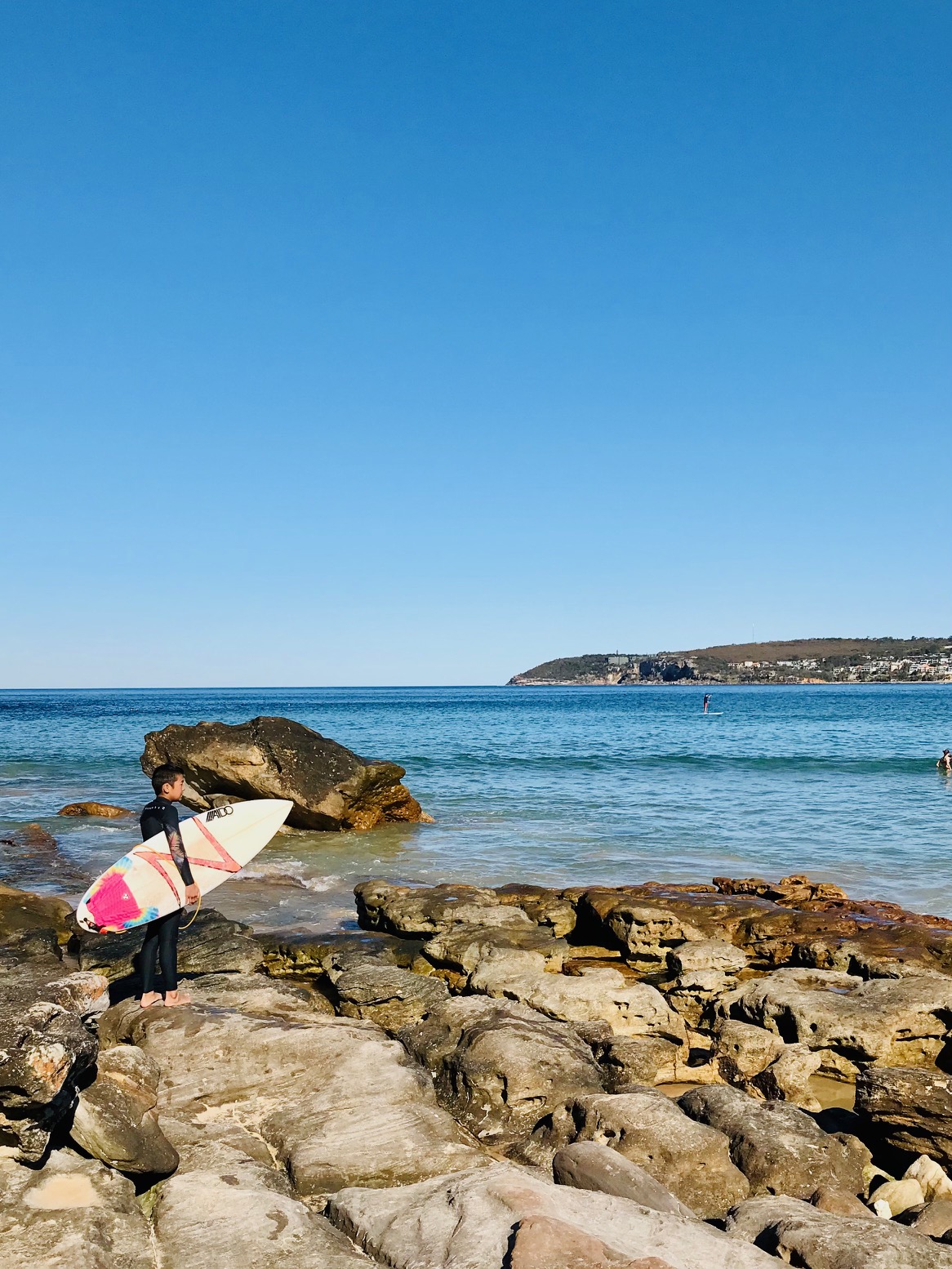 The radius for exercise shrinks from 10km to 5km in Sydney today, so I took the youngest for a last swim at Freshwater Beach on Sunday.
