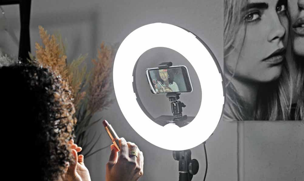 A store owner explained to her: “Since it’s a ring of light, you have this beautiful neutral zone in the middle and a ring of light around the face, so it gives a soft glow along the edges. It’s not a single source hitting your face, so it really helps wash out any blemishes. You don’t need to worry about light placement. You just put it right in front of you and it illuminates you appropriately. It’s really easy.”