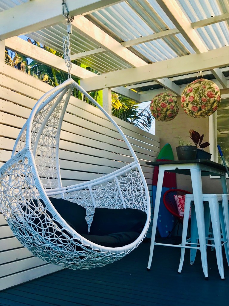 Well, I didn’t really buy it for myself. The youngest has been begging for a hammock chair for the back deck. I figured my old bones wouldn’t cope with sitting in one of them, should I ever fancy taking in the air, so I upgraded to a hanging egg chair.