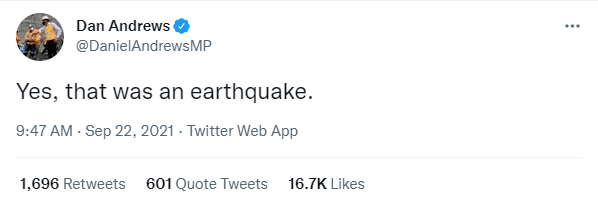 You’d think Victorians have suffered enough after being in lockdown more than they’ve been out in the past 18 months, but no, Mother Nature sent them an earthquake yesterday.