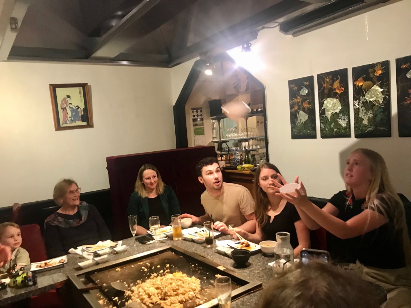 We’ve gathered around the teppanyaki grill for the past 10 years and our numbers have swelled along the way. My nephew’s little brother has grown from a tiny baby to having his own seat at the table, then there’s his dad and wife, his paternal grandmother, my sister and her husband, me and my kids and DD. It’s a bit of a trek for my parents these days, so they missed this one, but they’ve enjoyed many happy nights paying to have eggs thrown at them.