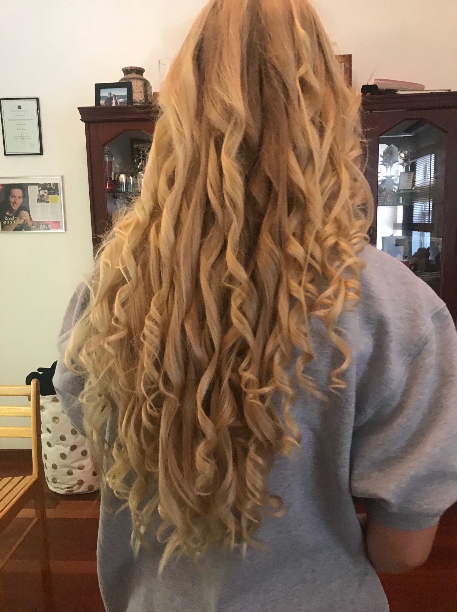 The curls had to be left tight due to the humidity, with the hope they’d relax into beach waves by 6.30pm. When they were finally done, we frantically drove home to get dressed and go to pre-formal drinks. Well, the parents drank, the girls were too busy taking a gazillion selfies of each other. The youngest was the most scantily clad of the bunch and looked quite terrifyingly grown up, despite not wearing a scrap of make-up, aside from a swipe of mascara.
