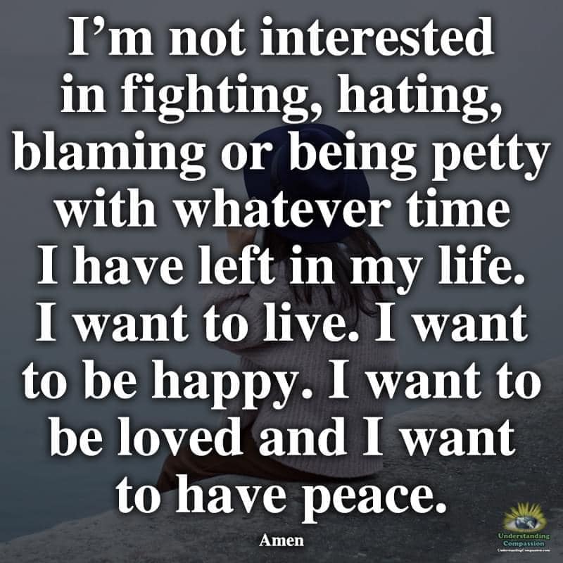 My eyes fill with tears thinking of her yearning for peace. I posted a comment sending her love. Should I have done more? It’s too late now.