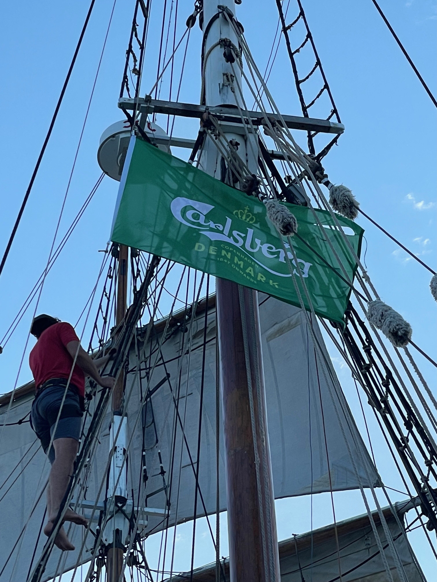 I contacted Carlsberg, which agreed to provide the beer for the big day, plus a few flags for the ship to fly.
