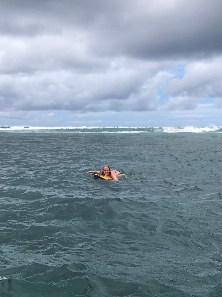 For example, I was completely useless when she was surfing in the middle of the ocean in Fiji. I can’t even swim – all I could do was panic on the boat and frantically scan the water for her blonde head.
