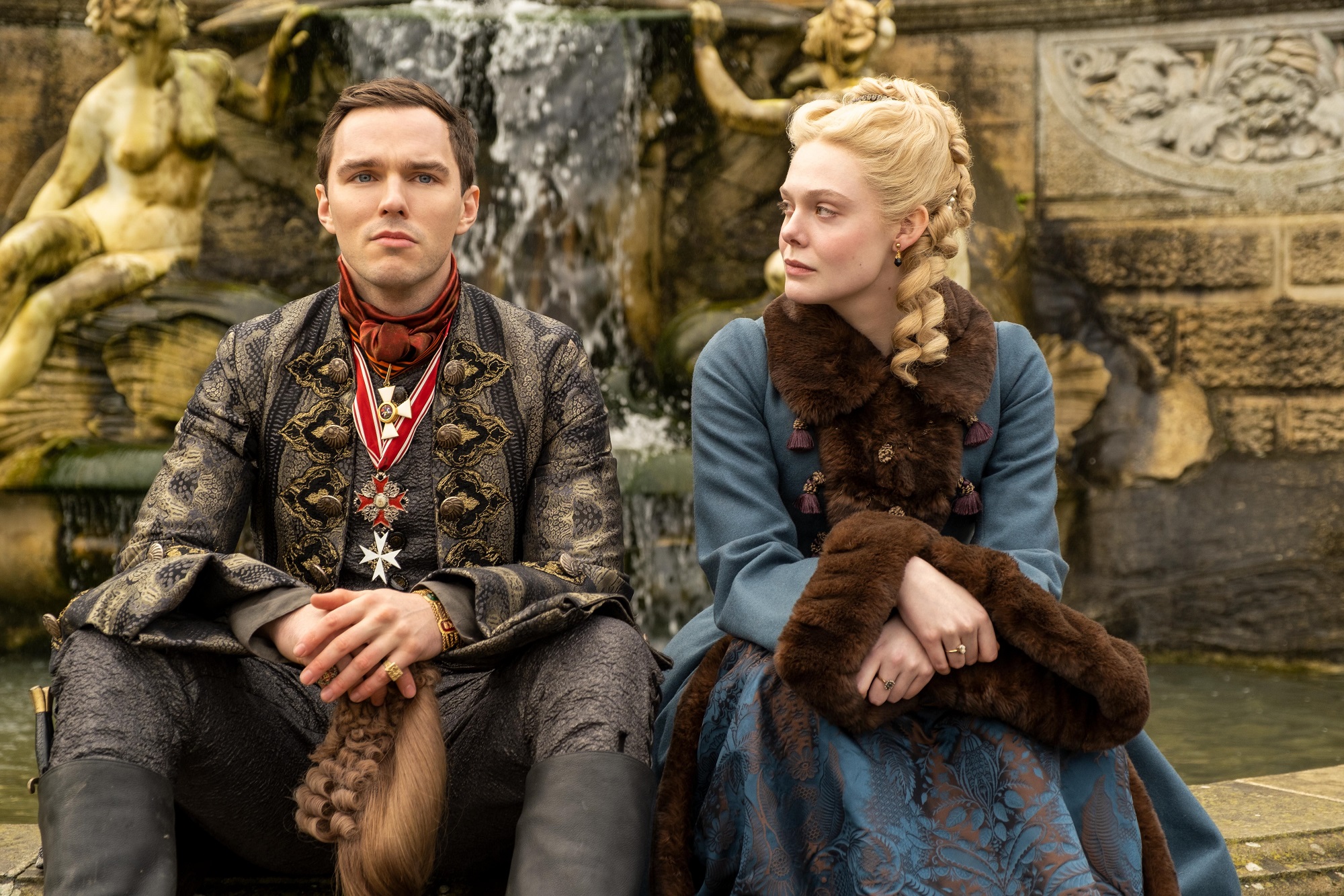 The darkly comical historical drama stars Hoult and Elle Fanning as Emperor Peter III and Catherine the Great.