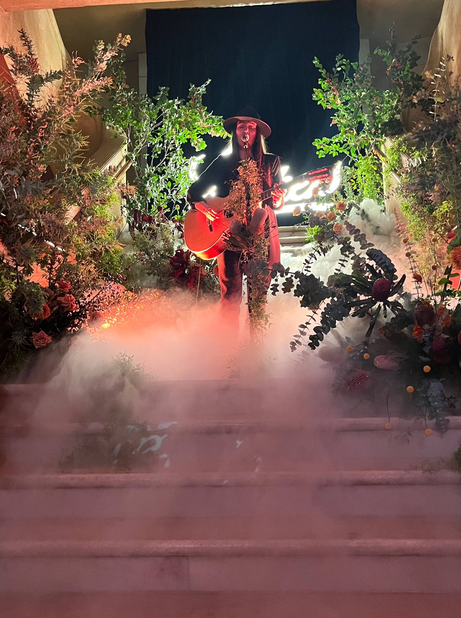There were Coopers ice sculptures dotted around the room, the most incredible foliage everywhere, a singer/guitarist playing on the stairs as mist swirled around them, delicious nibbles and lots of Coopers beer and Pol Roger champagne flowing.