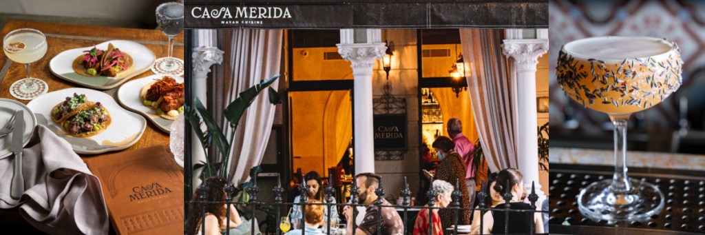 The restaurant draws its inspiration from the Mexican city of Mérida, famed for its palatial elegance and Mayan ancestry.