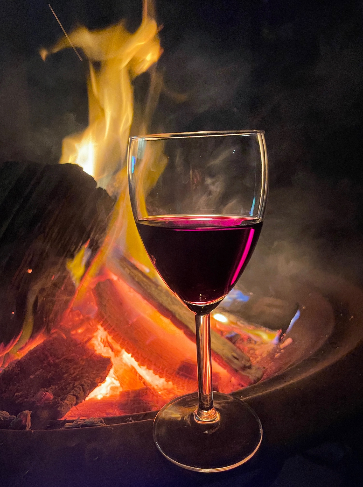 He’d also stoked his fire pit so we could nestle beside it with a glass of wine. And he nearly burnt his fingers off taking a wine selfie for me before I arrived.