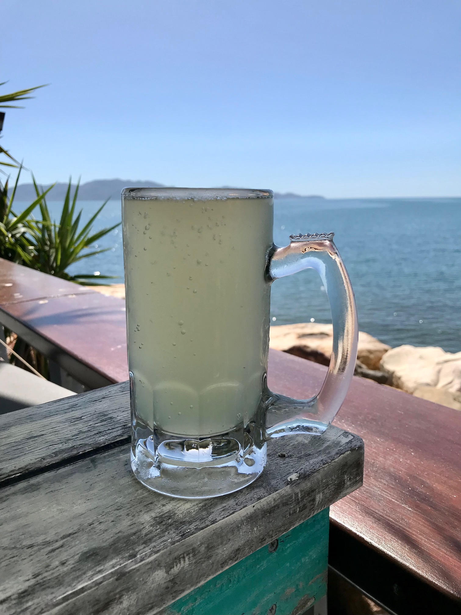 After docking, we caught a cab from the ferry terminal with our luggage to Longboard, which is located on The Strand in Townsville. It was the perfect spot for a farewell lunch by the sea, looking out across the sparkling water at Magnetic Island.