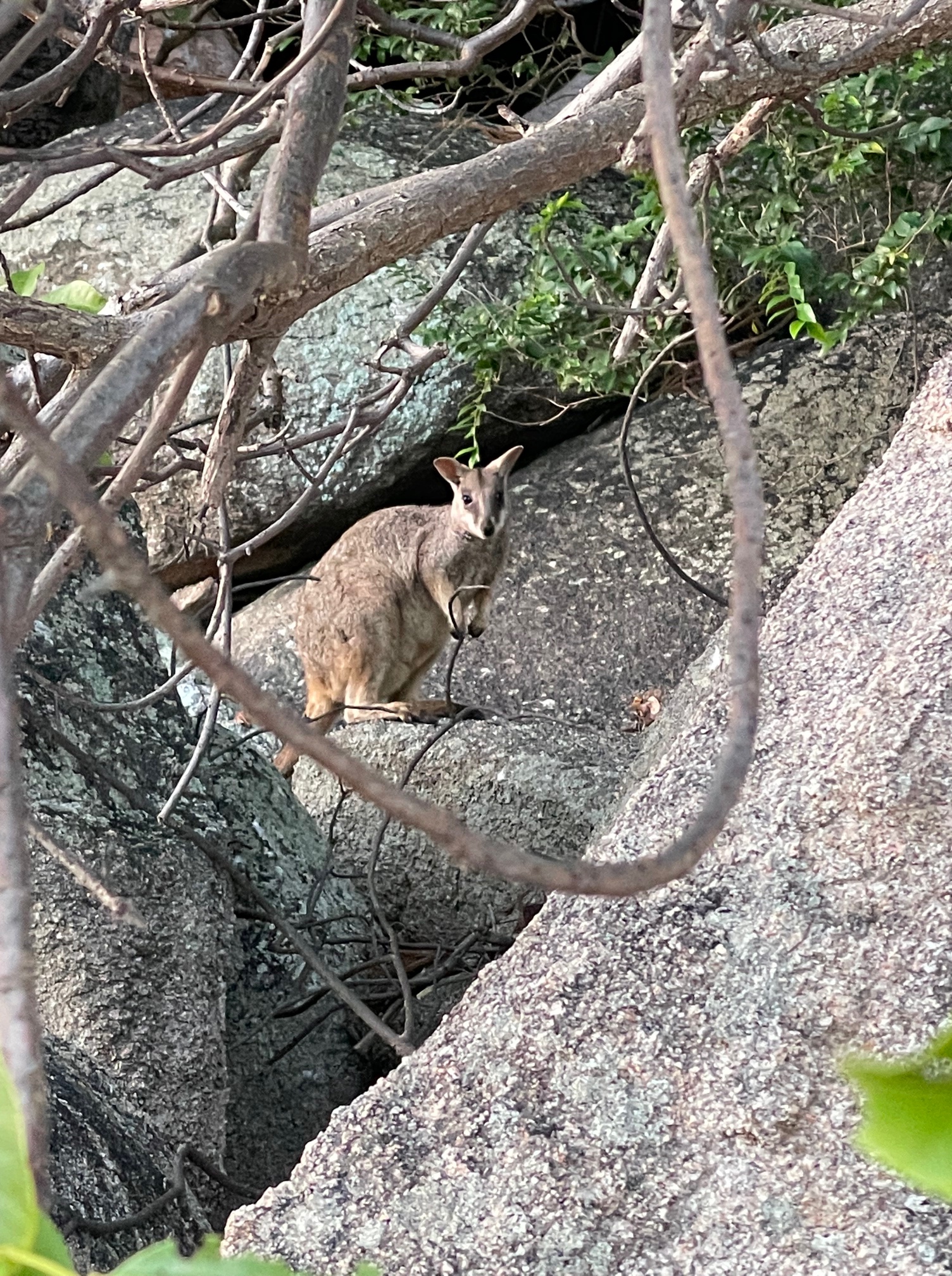 Getting up close with rock wallabies at sunset at Geoffrey Bay was amazing. They love sitting on the warm rocks and being fed carrots by visitors – although we went empty handed because feeding them isn’t encouraged. The wallabies were so curious and clambered within centimeters of us.