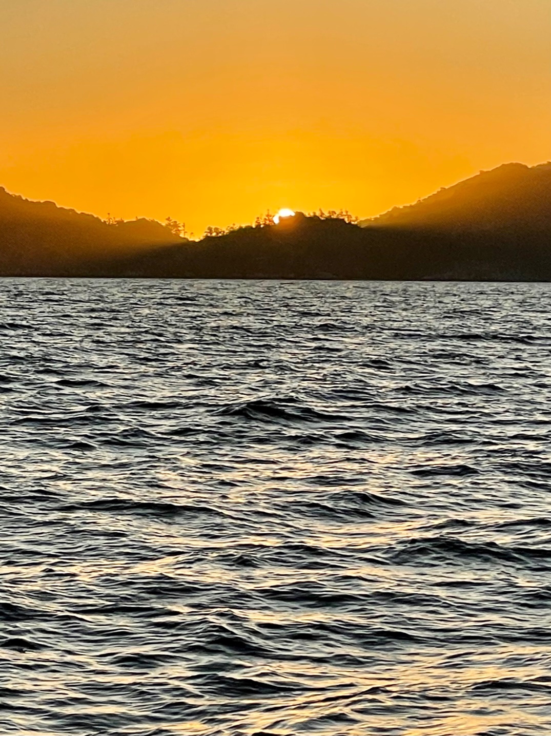 It was glorious to be out on the ocean with DD as the sun dipped behind the hills and turned the sky purple and pink in the fading light.