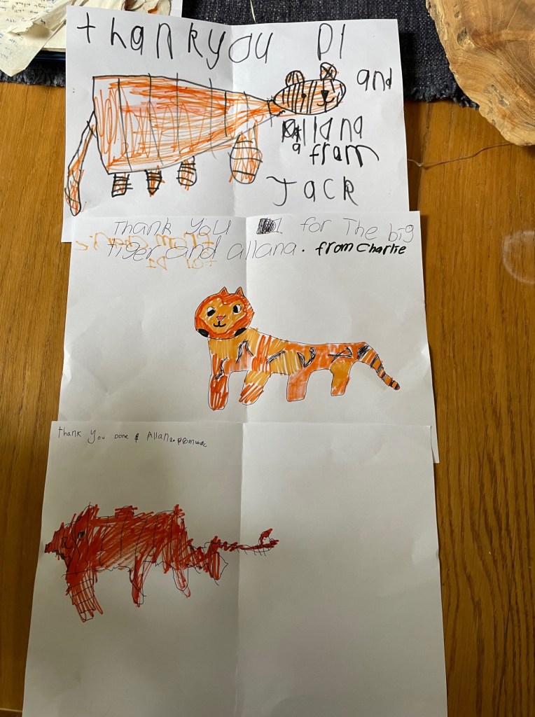 The neighbour sent a text to DD speculating about the wrenching memoir one of the kids might write one day … “we had a tough childhood, only ever had one tiger that we had to share and fight over”.
