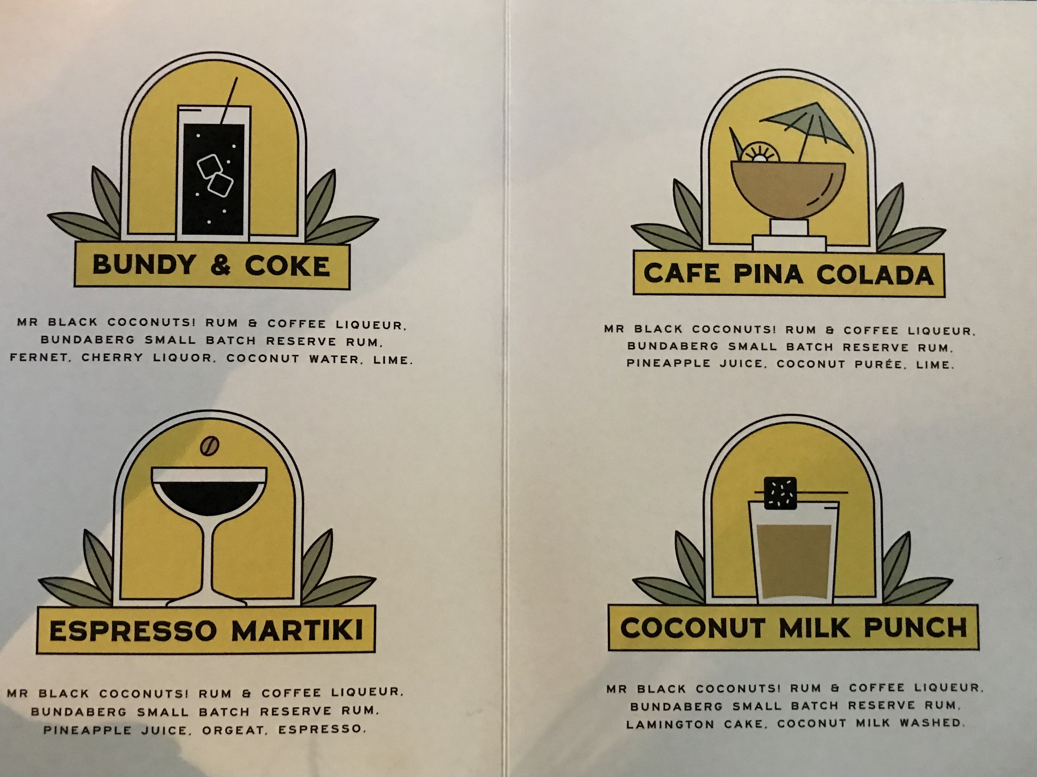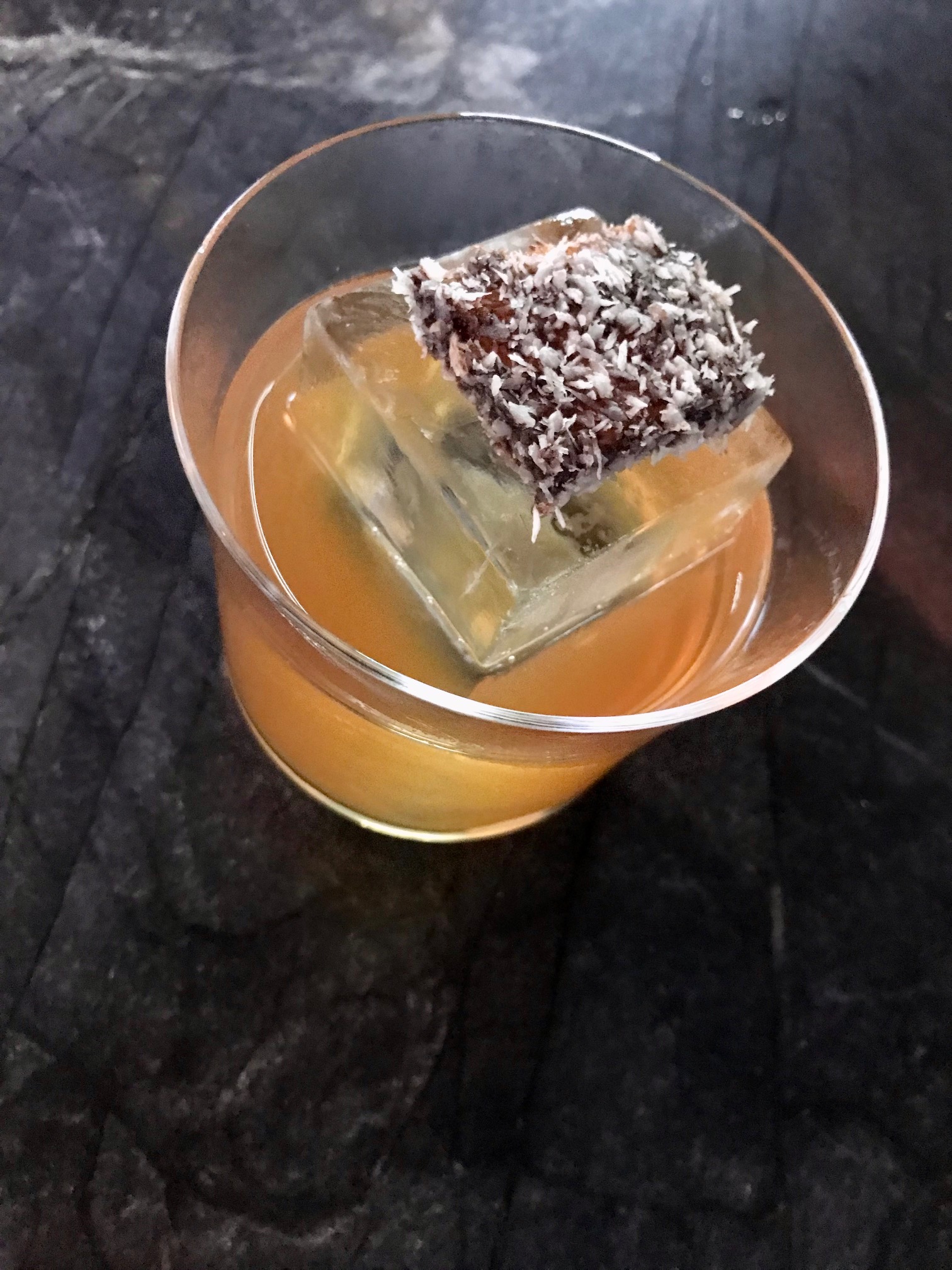Our favourite of the other three was the Coconut Milk Punch, which had a yummy piece of lamington on the giant ice cube, although it was also very fun to sip coffee pina coladas out of coconut shells.