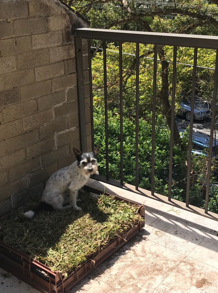 And I copied an idea I’d seen online and made my own grass piddle tray for the dogs on the balcony. I used a bread tray, a bag of dirt and a roll of turf. And, after much coaxing, they are both using it!!!!!