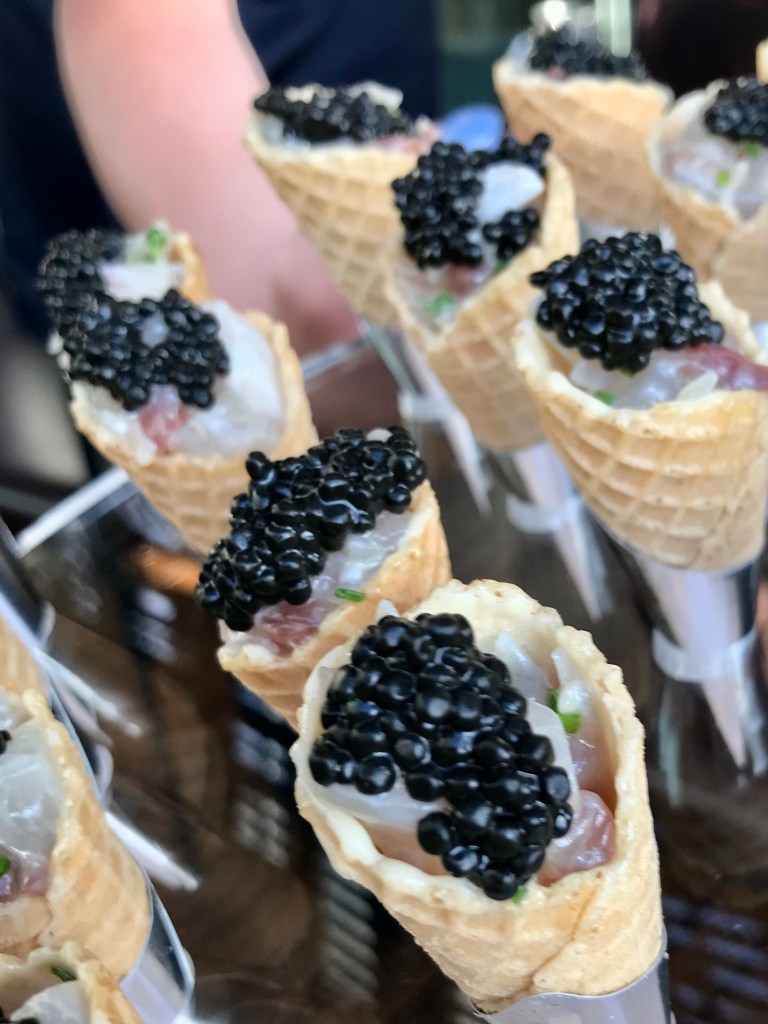 I took my sister to Smoke Bar at Barangaroo House for the debut of a new release by Bombay Sapphire called Citron Presse, which we sipped in delicious cocktails while eating mini ice cream cones filled with ceviche and caviar.