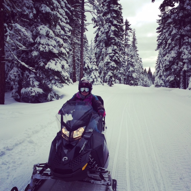 Aside from being gobsmacked by the scenery and taking hundreds of photographs of it, we were jazzed by sitting a spa in the snow at our hotel – as the steam swirled around us and the stars twinkled overhead – and by going snowmobiling for two hours in the forest. DD also spent a day skiing at the aptly named Heavenly Mountain while I shopped and saw a movie.