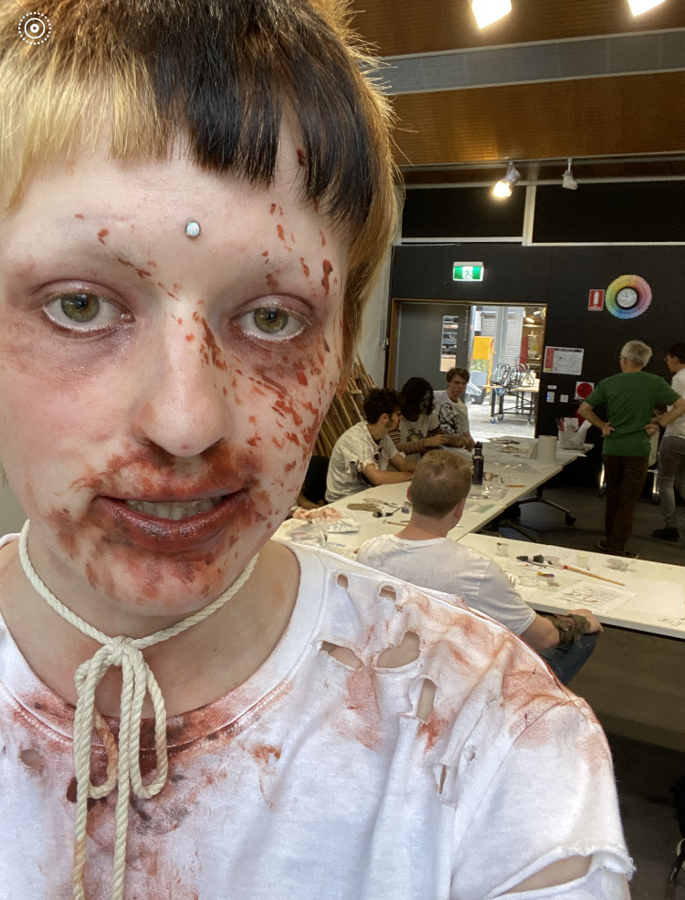 The eldest started TAFE this week and the first class task was to create zombie make-up.