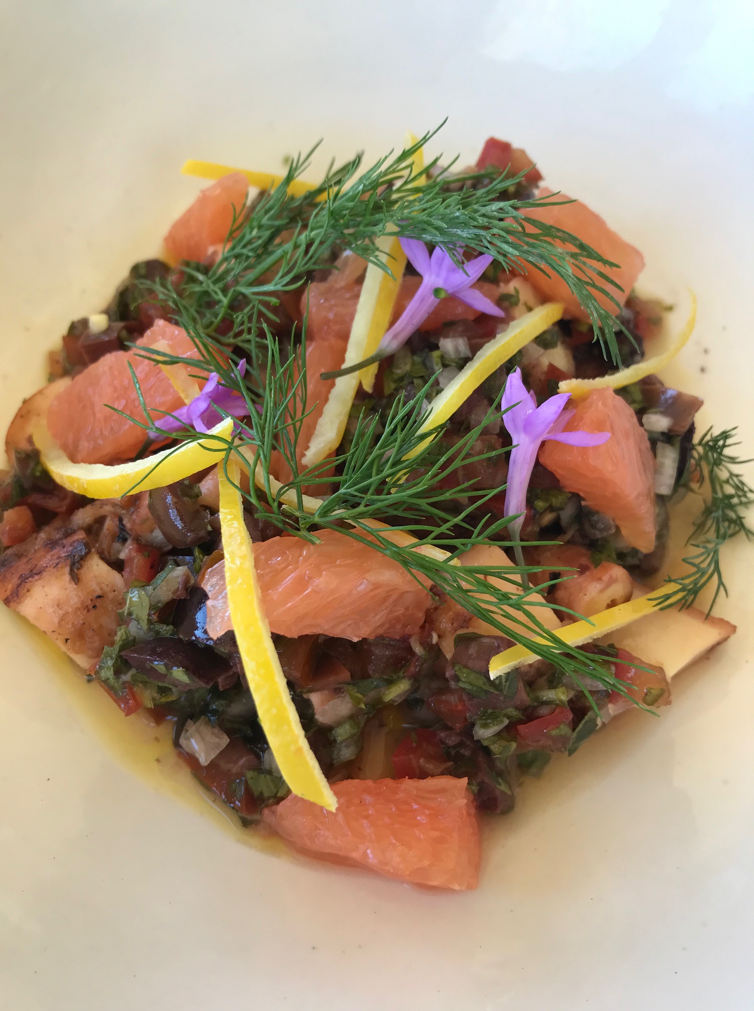 We had delicious morsels including confit octopus, sauce vierge, ruby grapefruit and preserved lemon; Moreton Bay Bugs, zucchini, avruga caviar and tomato essence; Tajima bavette cut steak with Café de Paris butter, pumpkin purée, swiss chard and red wine jus; roast pineapple, coconut white chocolate macaron, fresh pineapple, tarragon crisps and coconut sorbet; and lots of delicious wine, including a Keith Tulloch chardy.