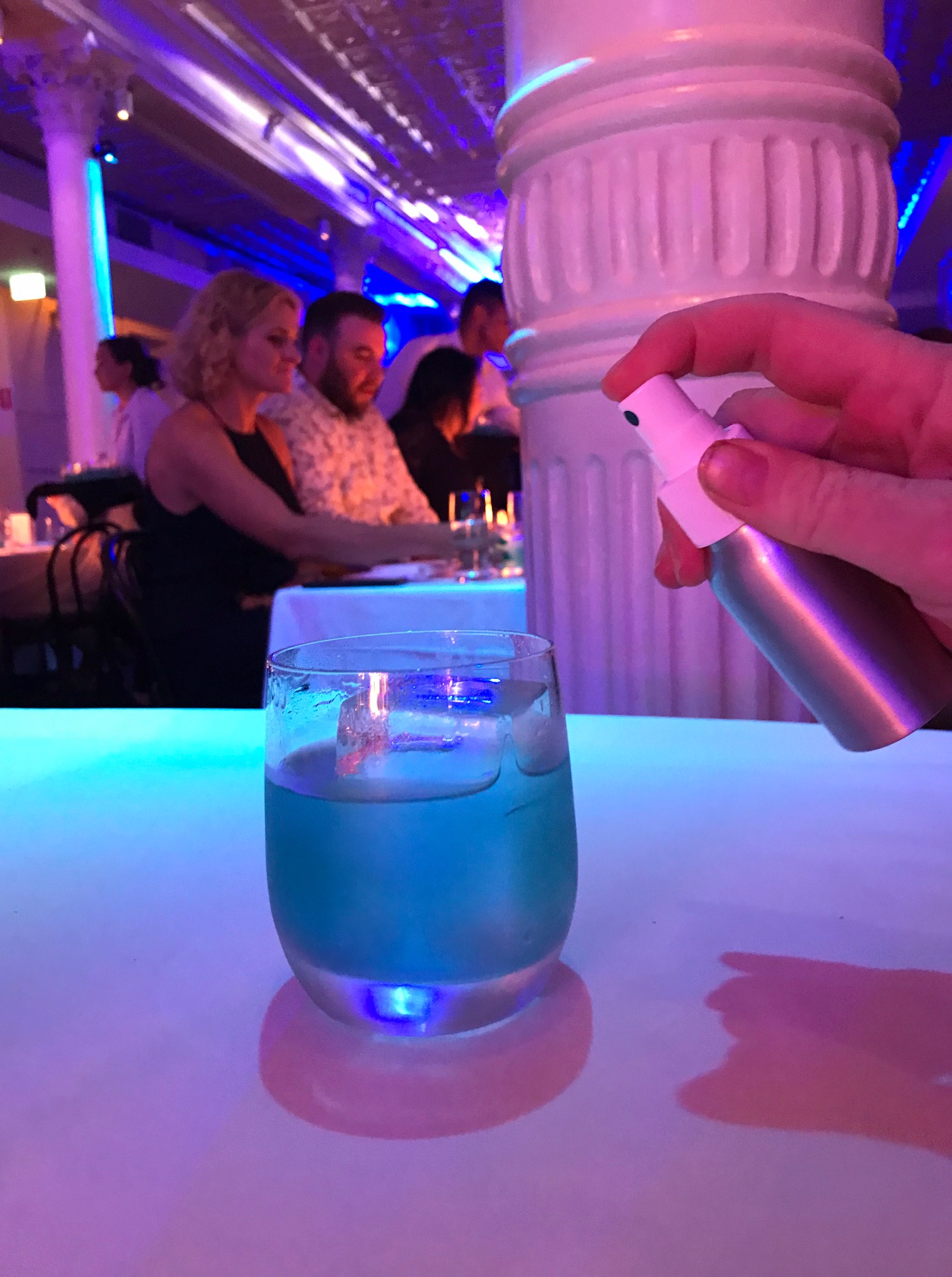 A bartender I met on my way out had his money on the ‘Symphony of Sapphire’ by Jake Down from Apollonia Bar in Sydney. It contained Bombay Sapphire Gin, young coconut, mint, faux citrus, saline and “rain aroma” that you spritzed on the top.